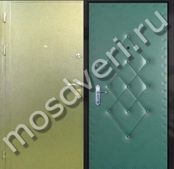Зелёная порошковая дверь эконом класса с винилискожей внутри — совмещает современный дизайн и превосходные защитные характеристики.