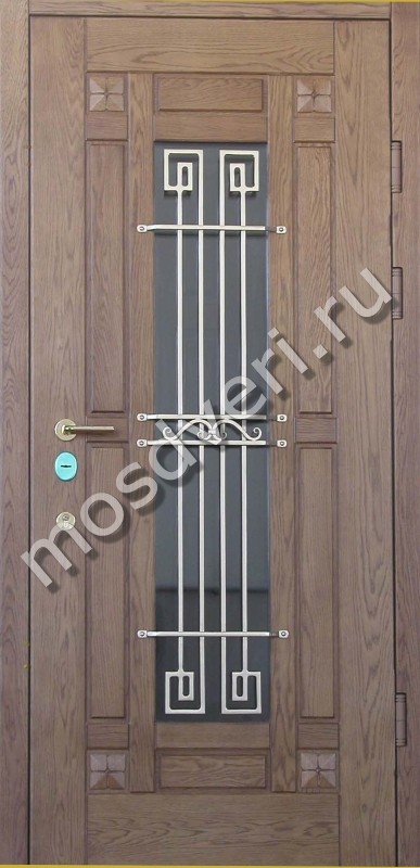 Коричневая входная дверь с элементами ковки — объединяет стильный внешний вид и максимальную защиту.