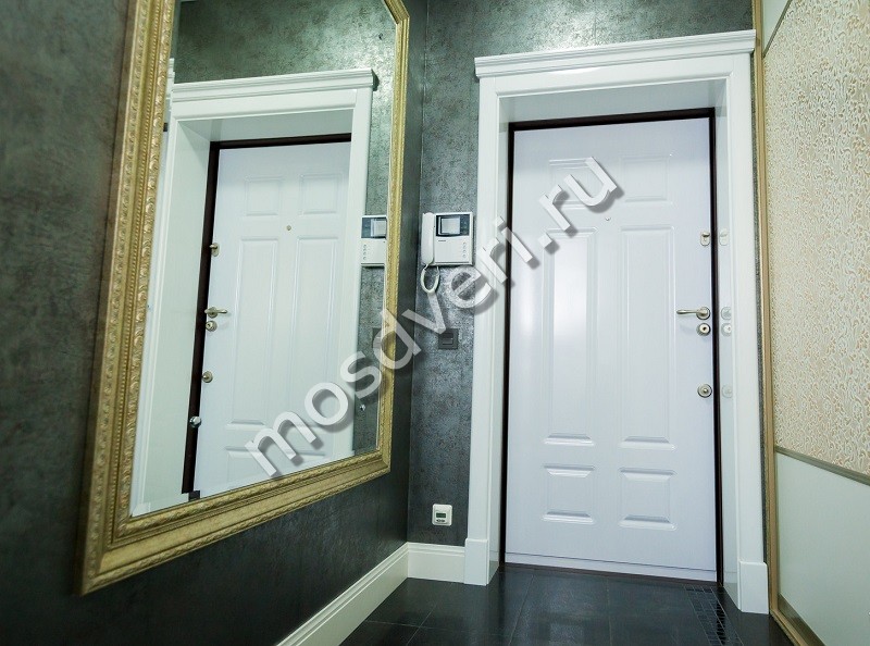 Образцы отделки белых входных металлических дверей в квартиру
